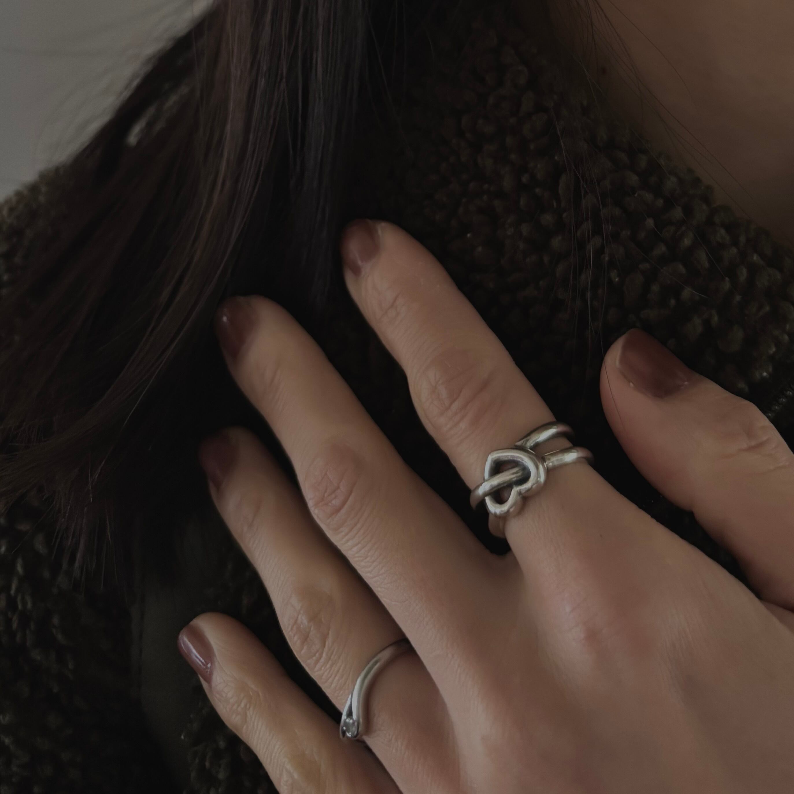 甘いハートモチーフも燻し加工で渋さを加え大人の女性のかっこいい遊び心を演出。
