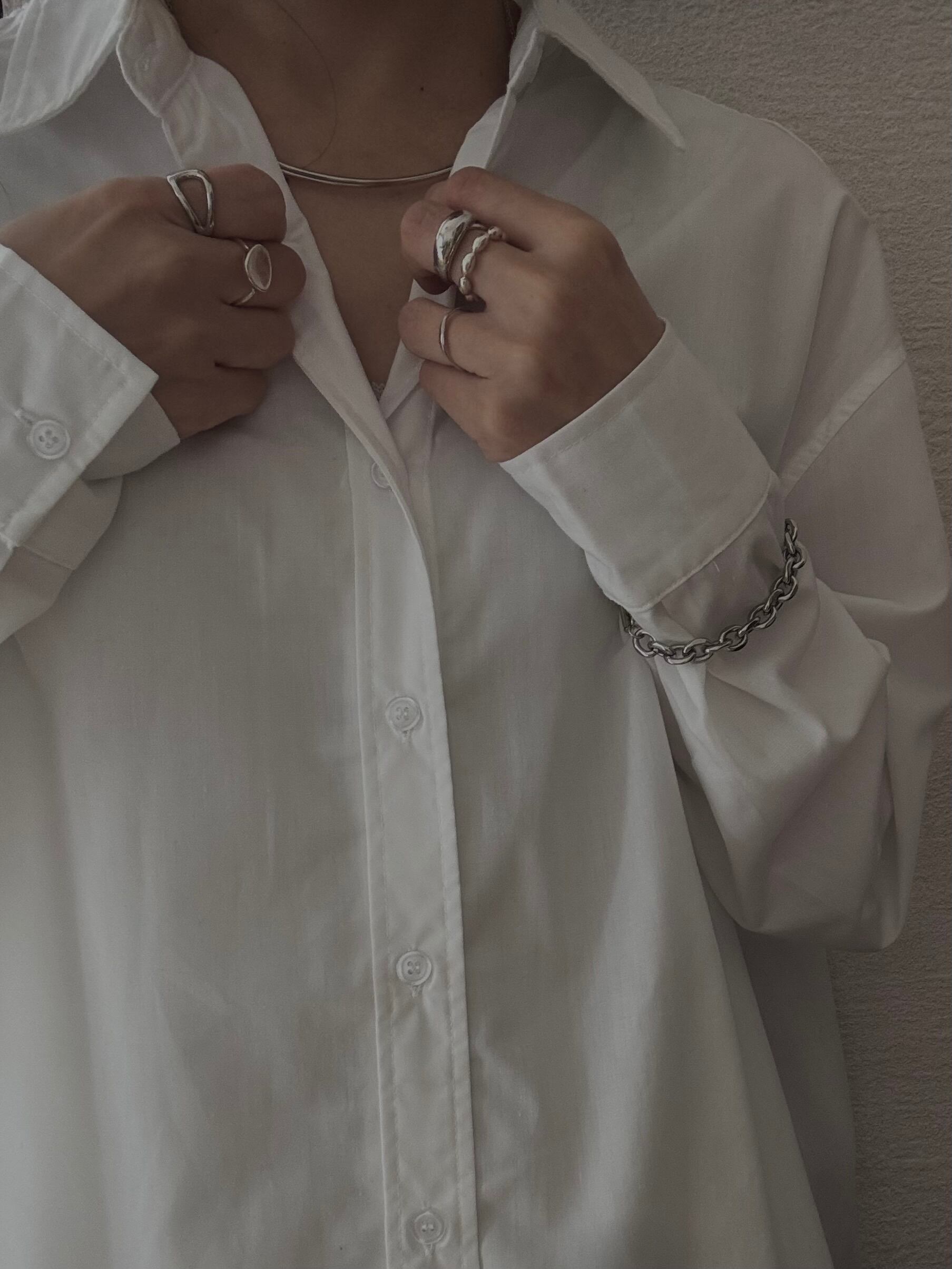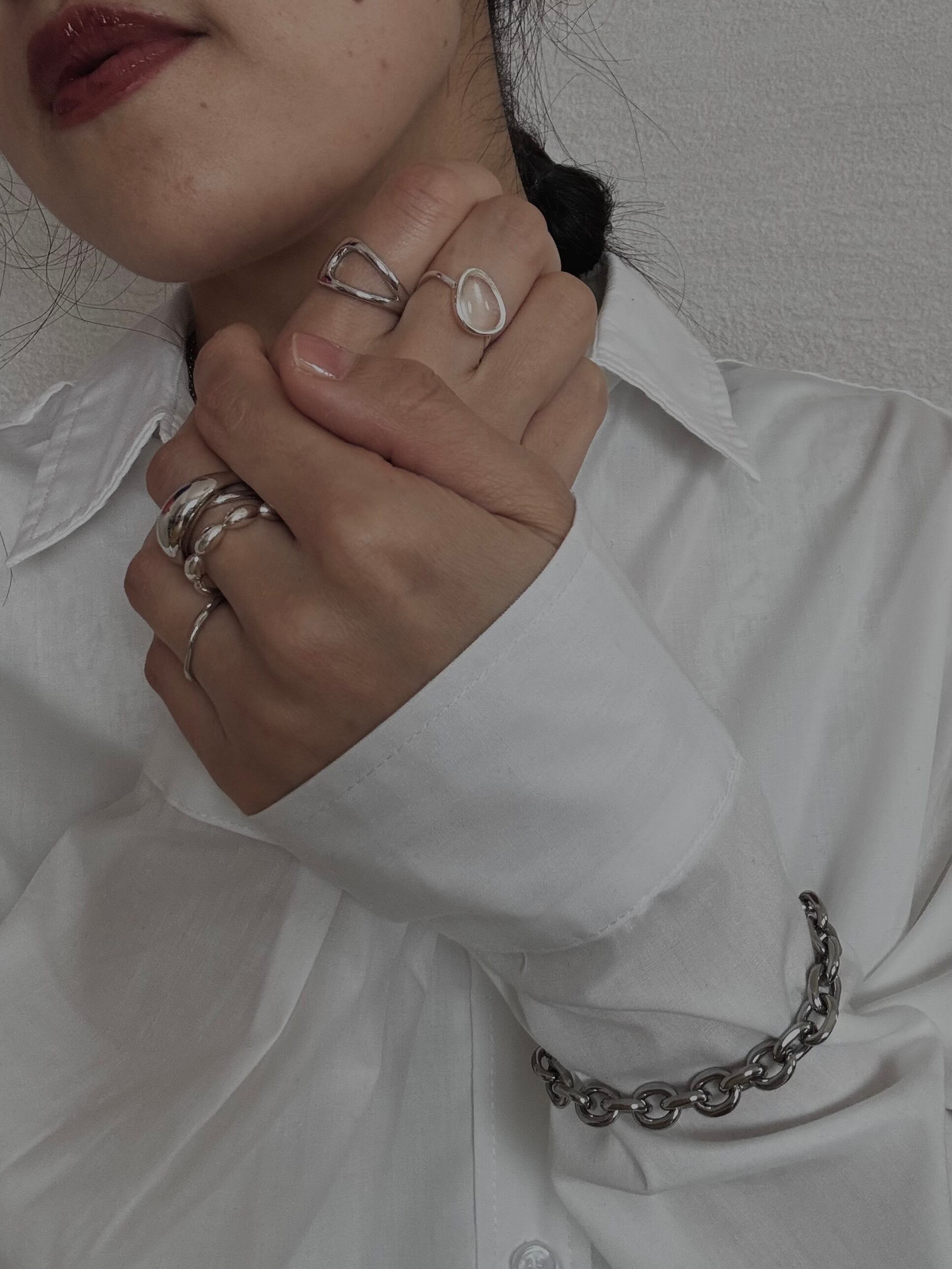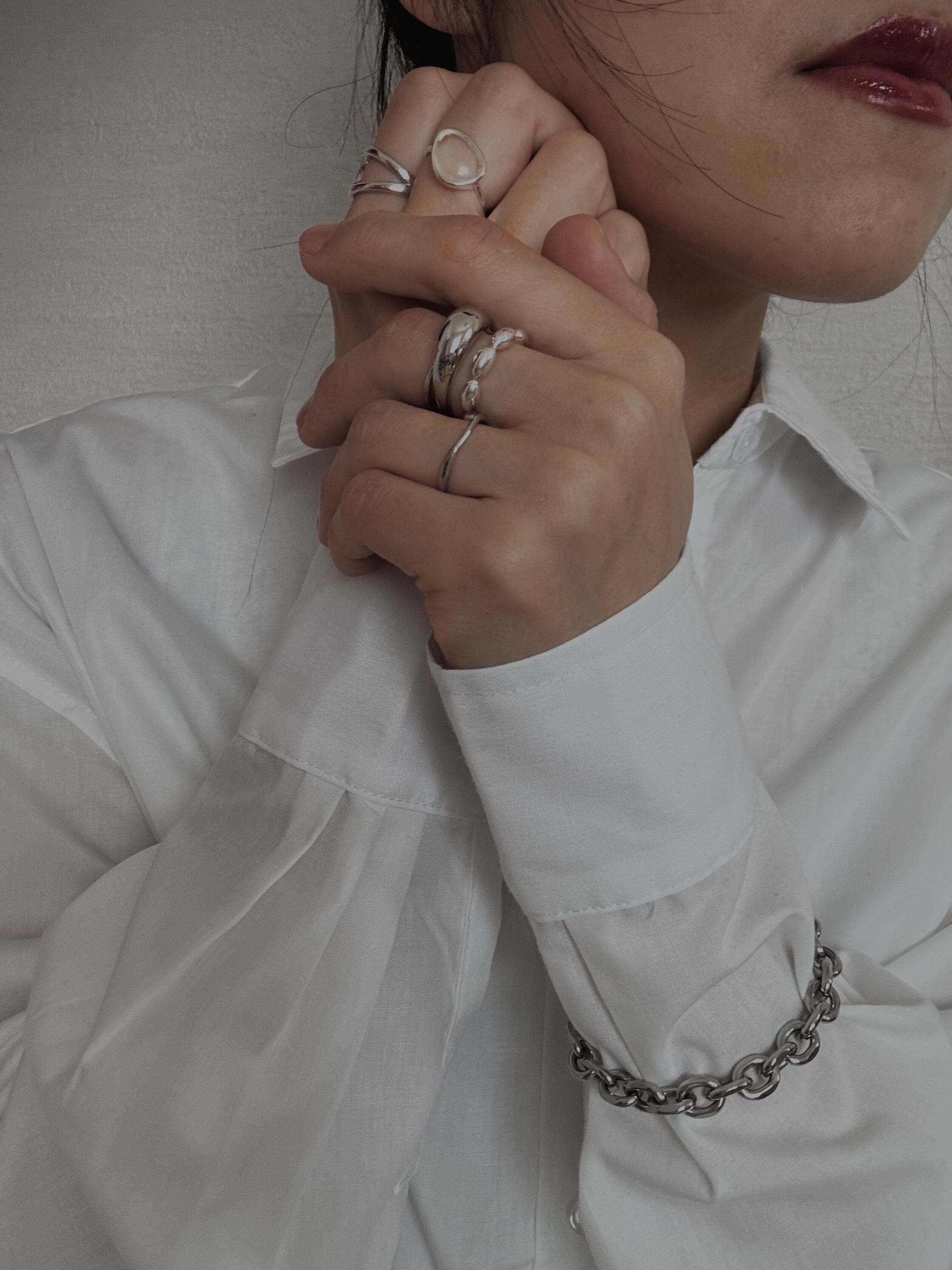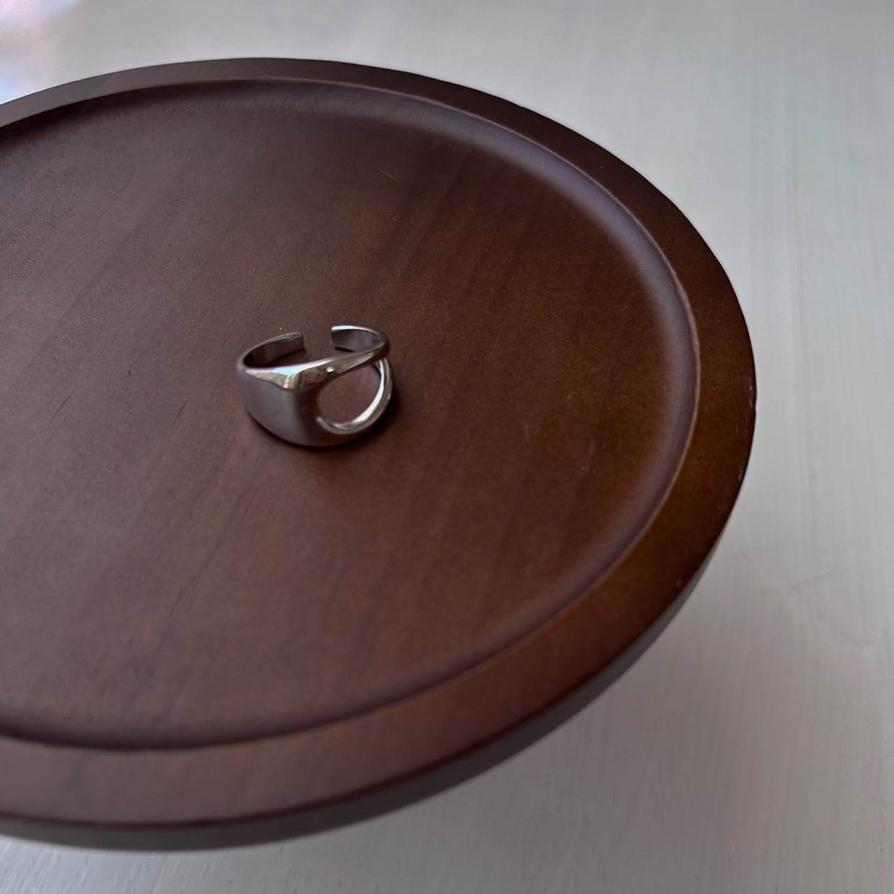 大きめリングですがつるりとした表面とホール周りの繊細な線がきちんとしたキレイめな印象を与えます。