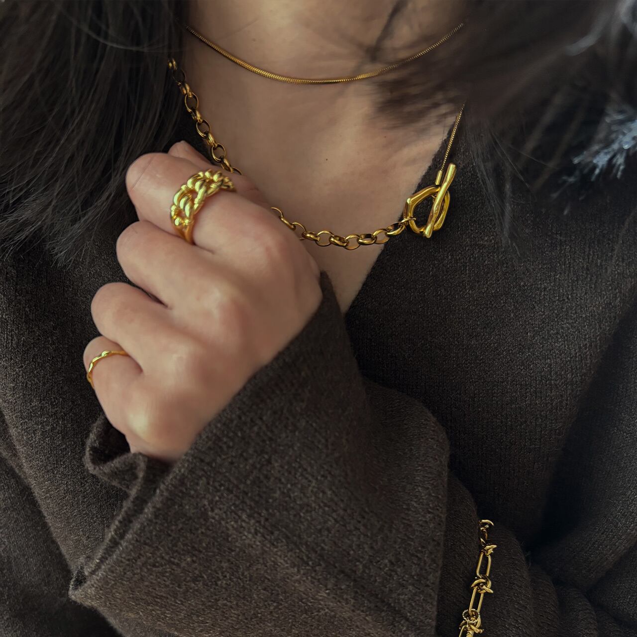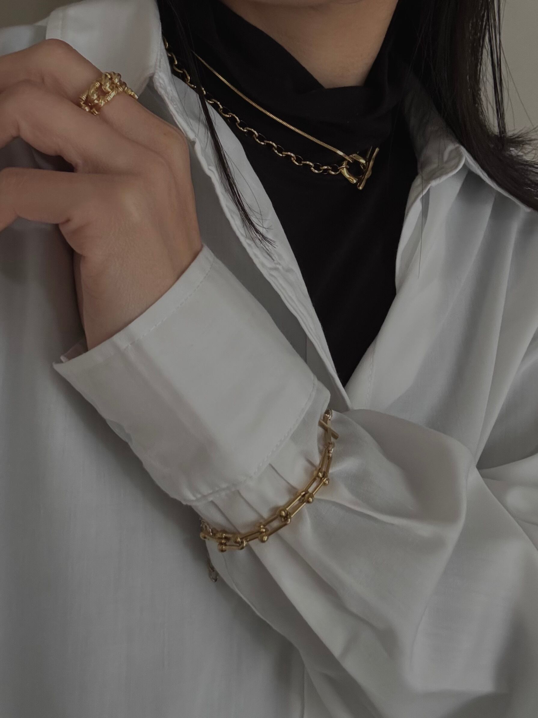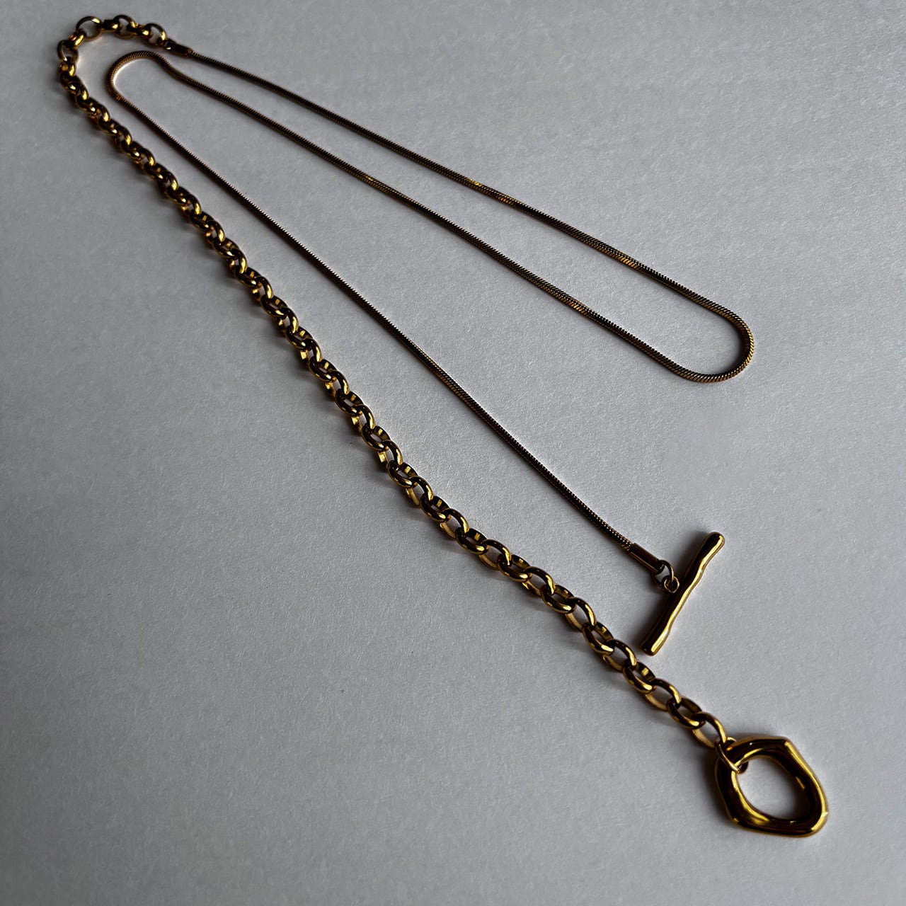 スネークとオーバルロール2種類のチェーンがドッキングされているためスタイリッシュに華やかさを加えてくれます。