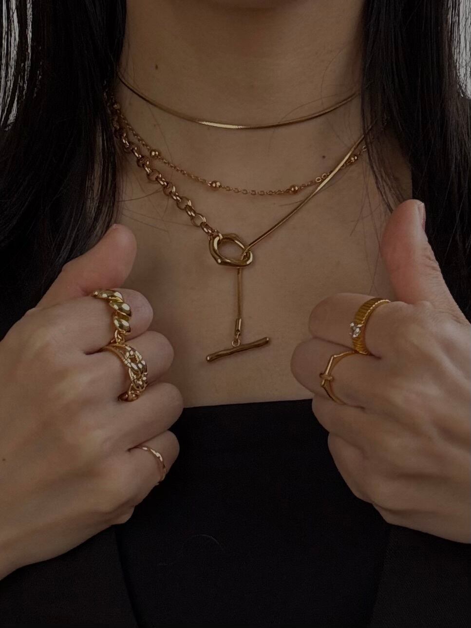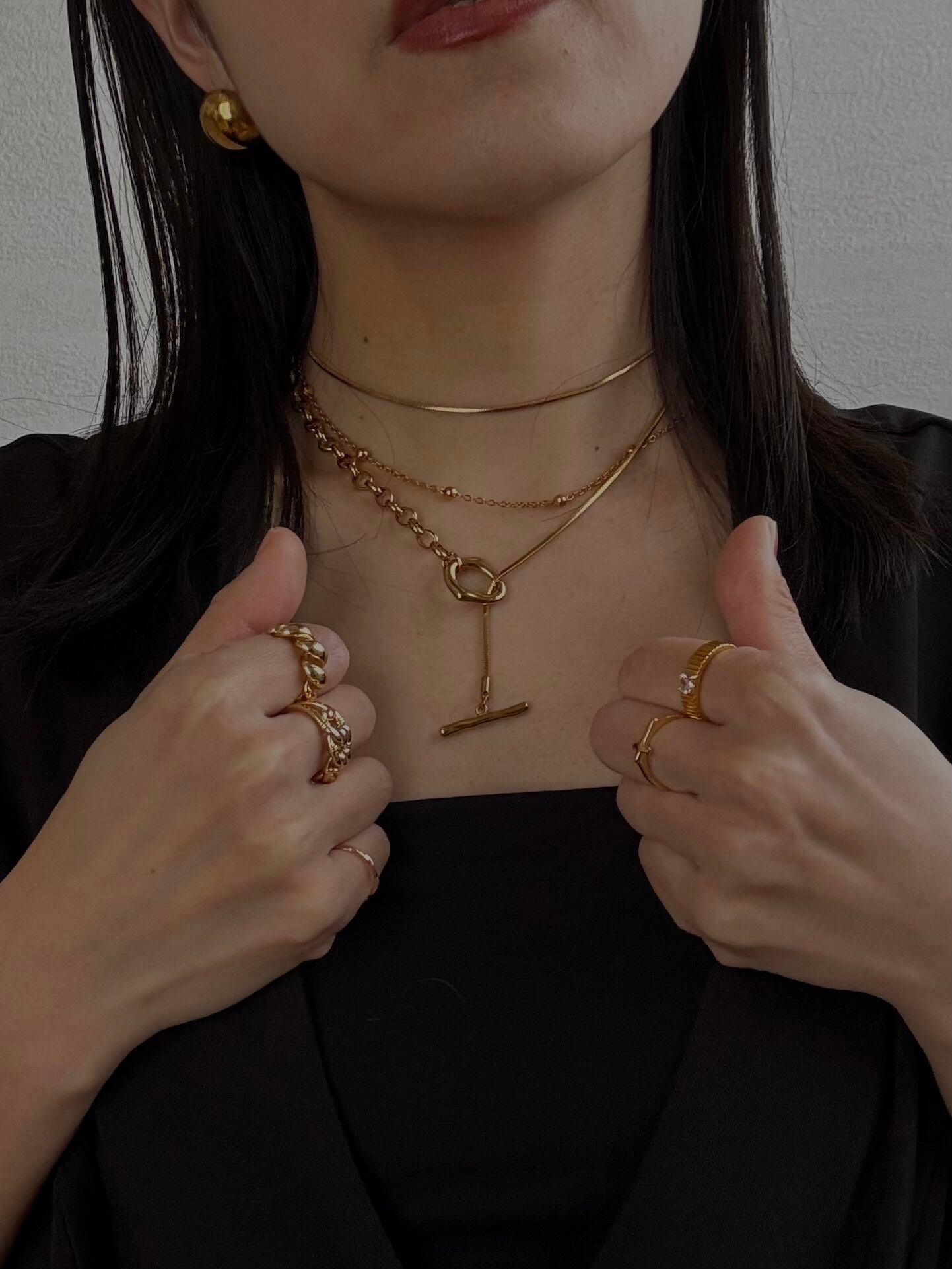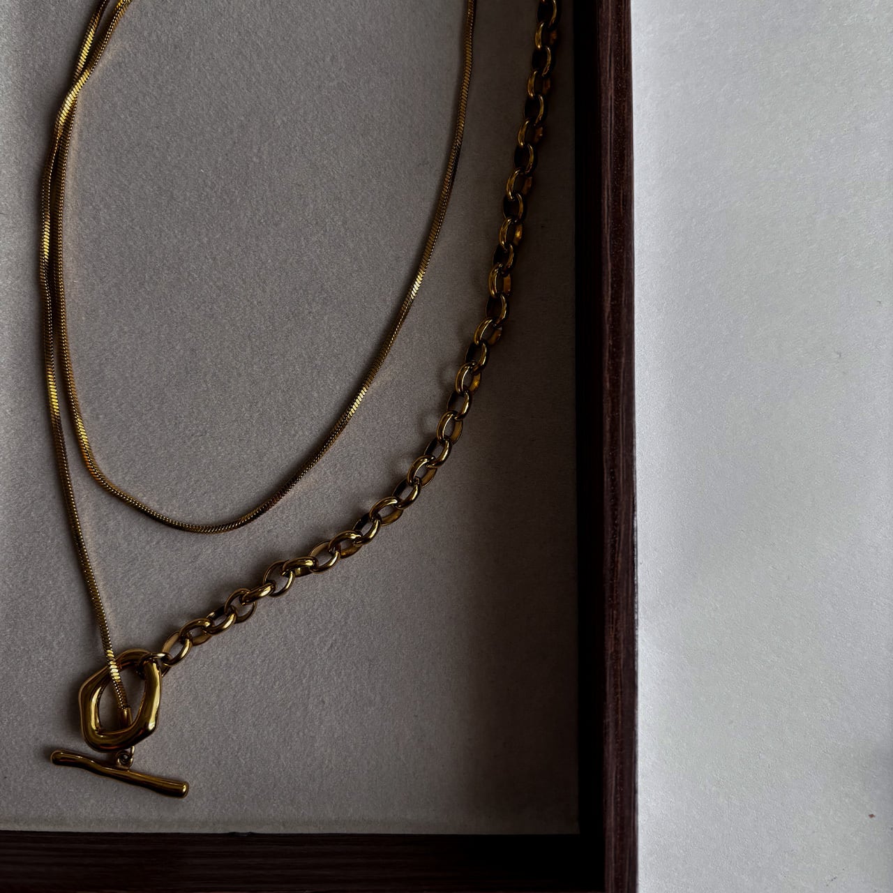 スネークとオーバルロール2種類のチェーンがドッキングされているためスタイリッシュに華やかさを加えてくれます。
