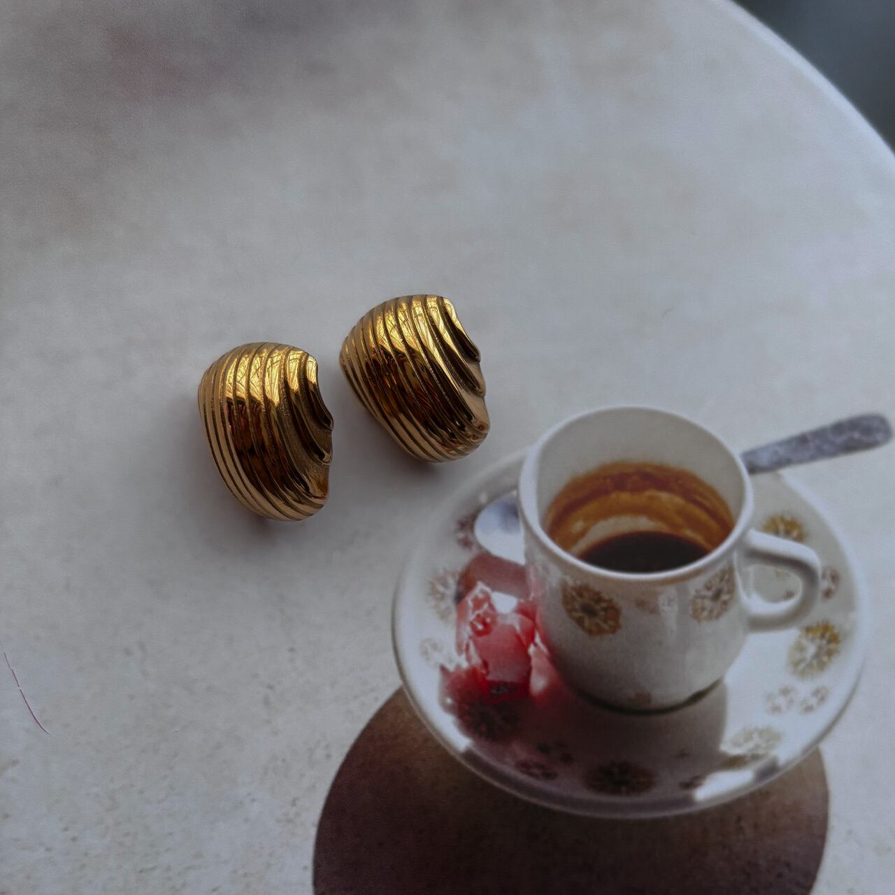 大きめサイズとゴールドカラーでお顔周りに上質な印象を与えてくれます。