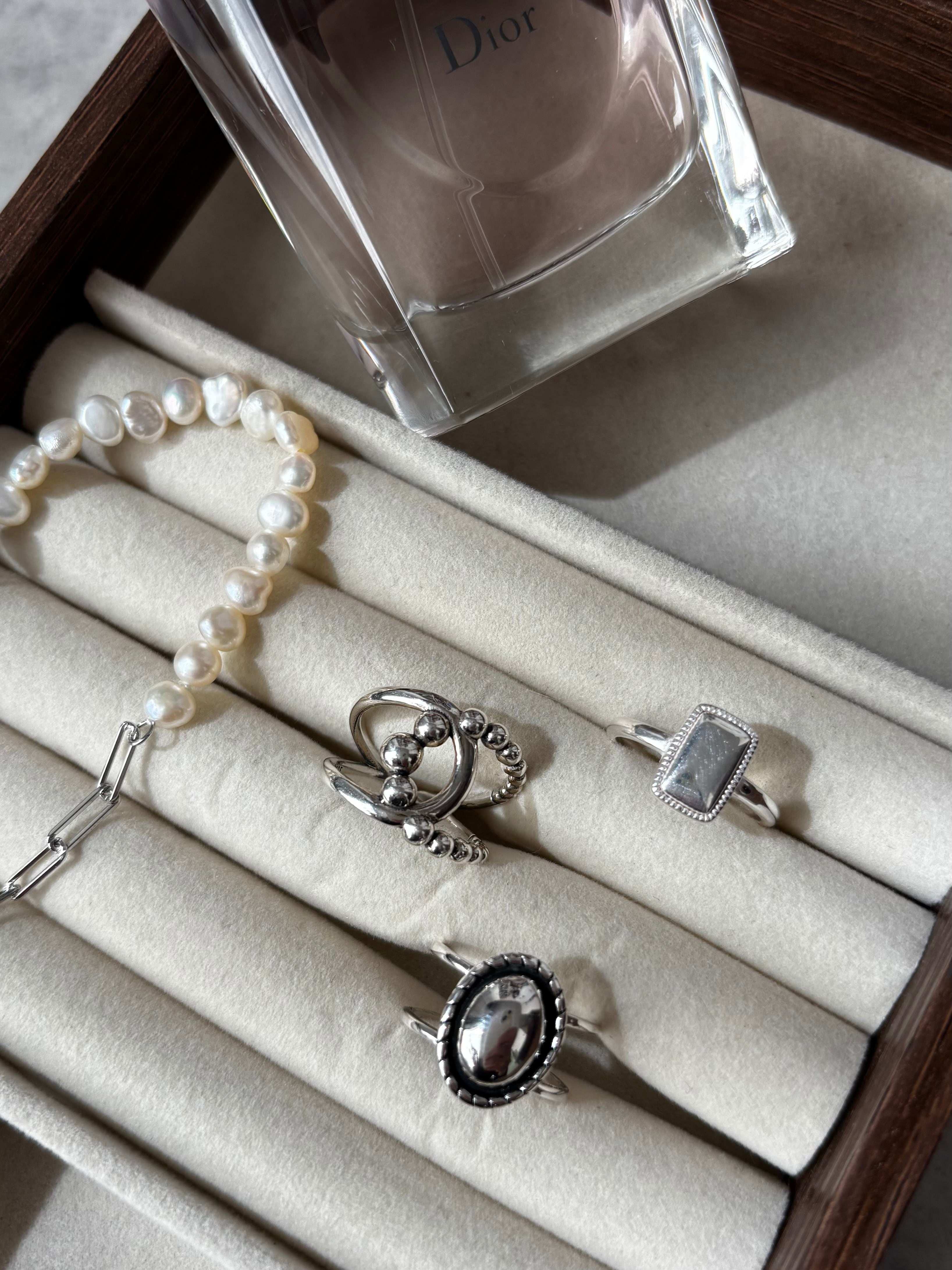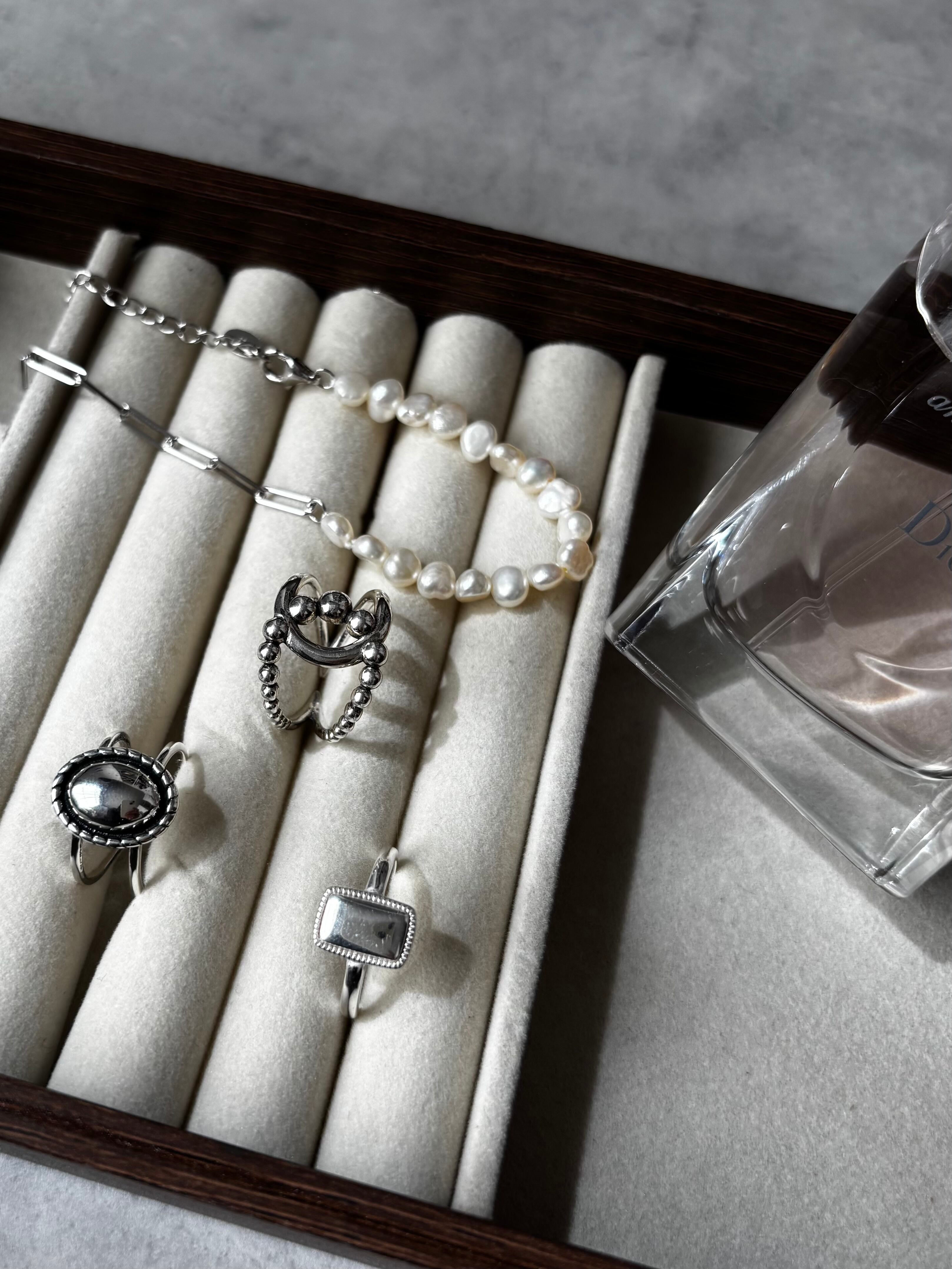 silverでできているからこそカジュアルに楽しむことのできるラグジュアリーなデザインのリングです。
